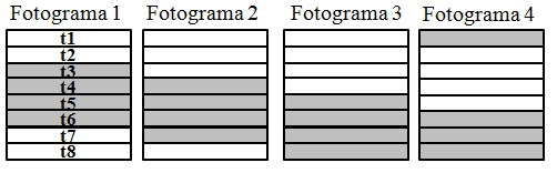 La animación por tintas consiste en definir un conjunto de tintas sobre las que se va a hacer rotar un conjunto de colores. Vamos a ver un ejemplo con unas franjas blancas/grises:
